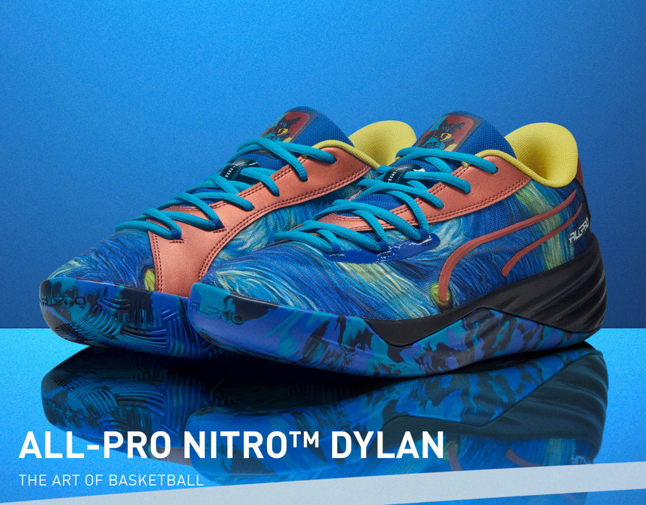 PUMA All-Pro NITRO™ Dylan Exhibit籃球鞋專為籃球運動員設計,技中底採用NITRO™ SQD 氮氣科技,緩衝回彈。TPU Formstrip 增加了支撐,而全覆蓋橡膠外底確保了耐用性和抓地力。