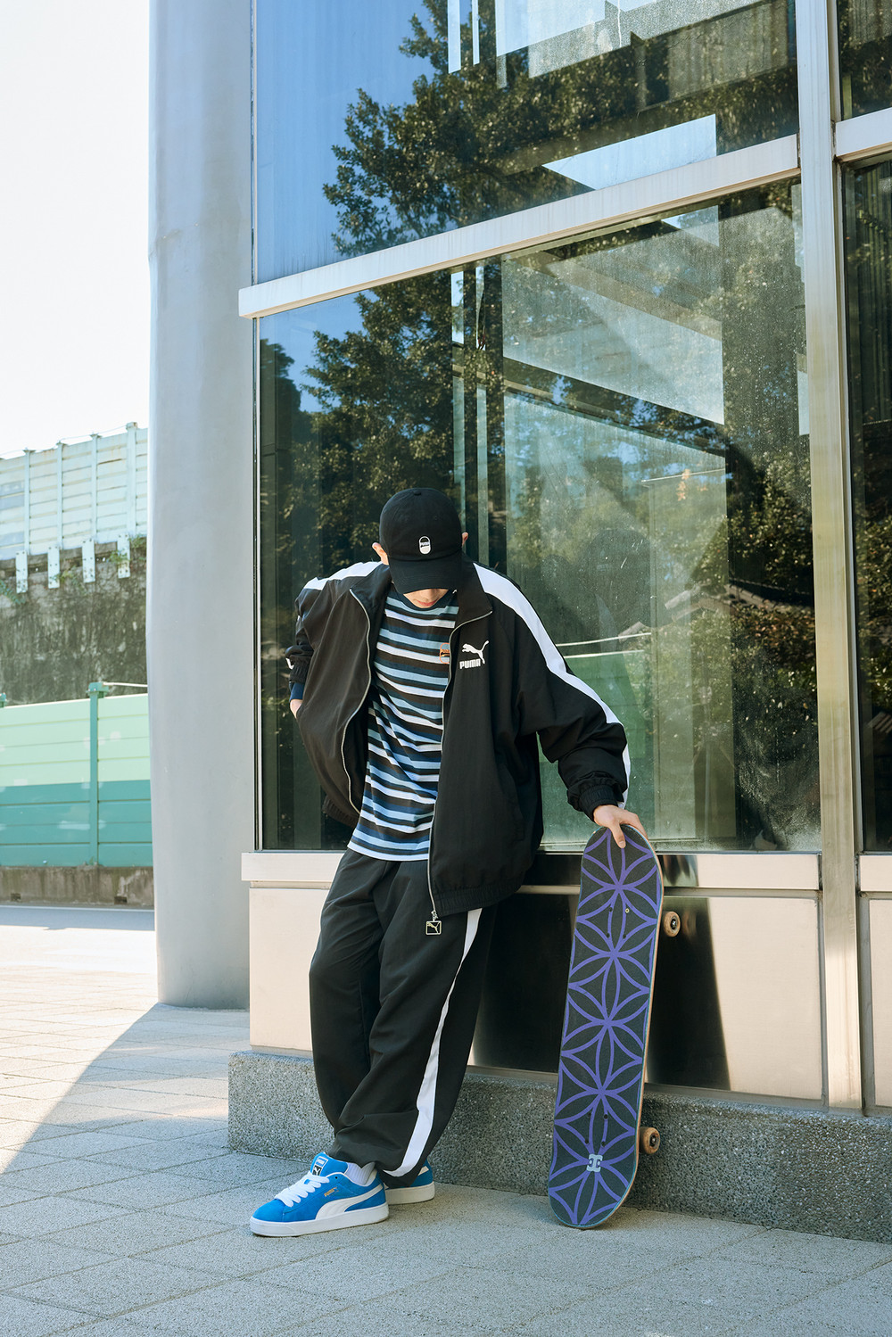 - PUMA 流行系列Downtown 180條紋薄長T恤以系列刺繡Logo為特色