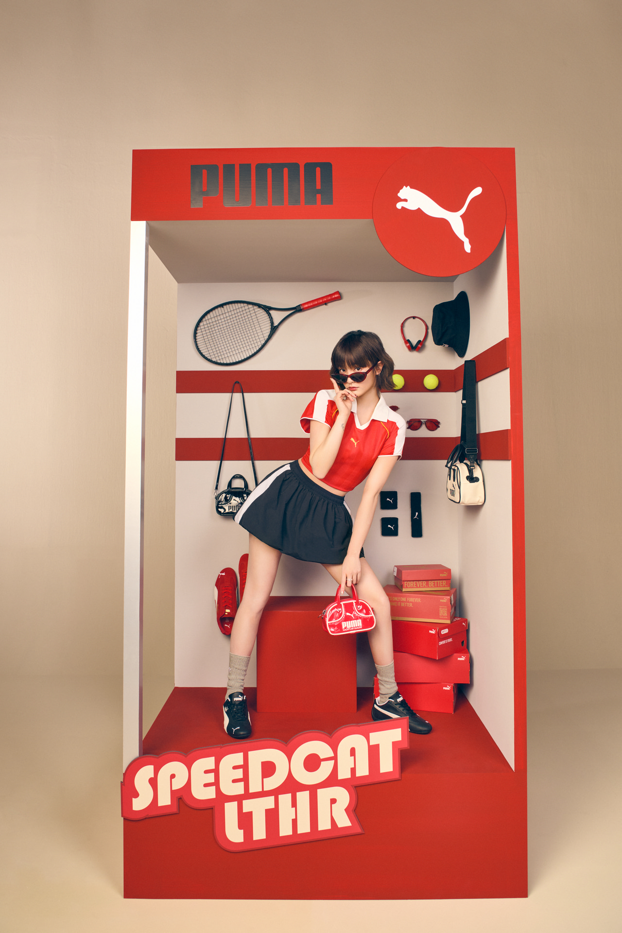 PUMA 流行系列T7氣球短裙以標誌性的剪裁線條、側邊收窄設計和 PUMA 品牌標誌為特色。