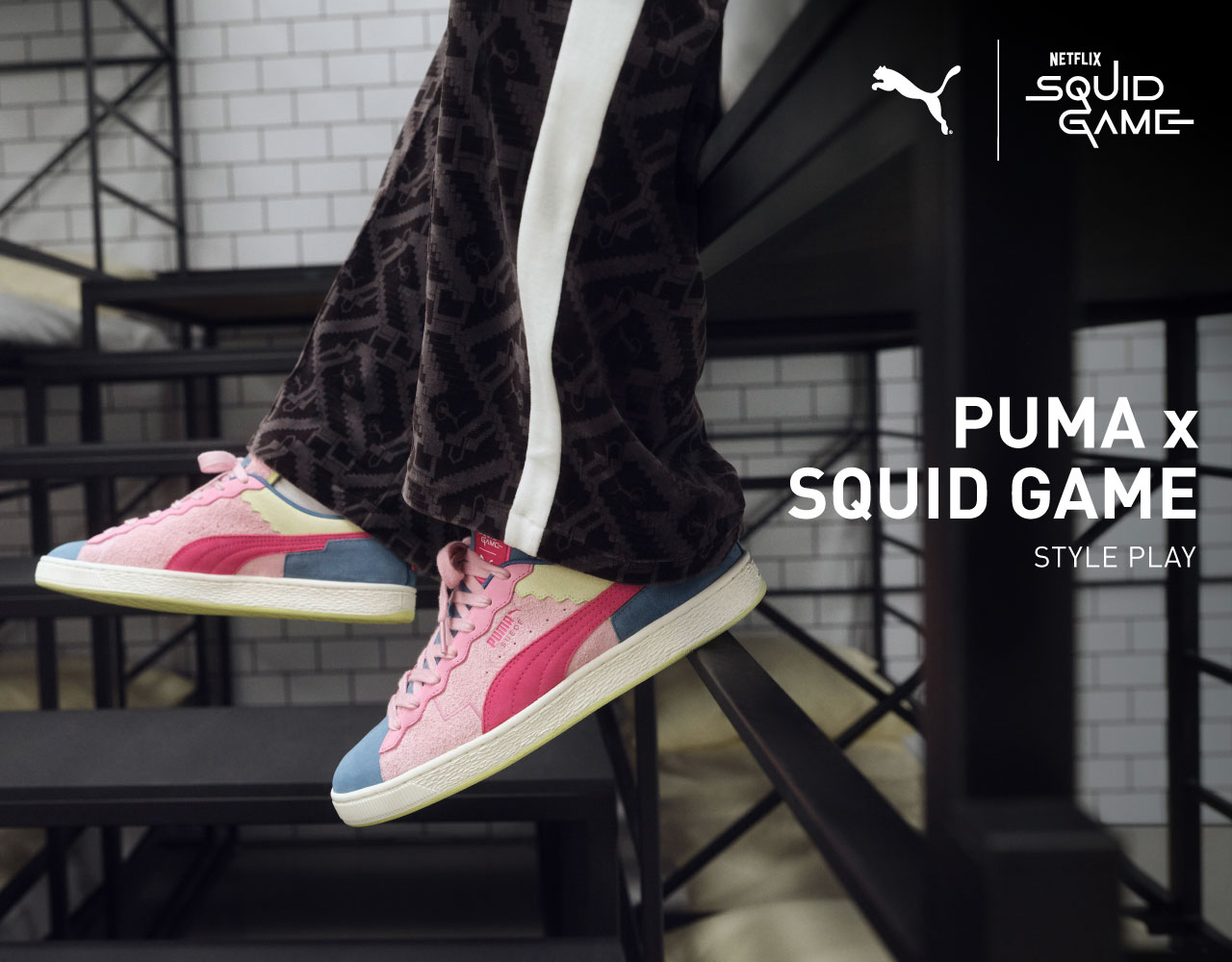 - PUMA Suede SQUID GAME休閒鞋為PUMA x 魷魚遊戲聯名系列,以魷魚遊戲圖樣細節為特色