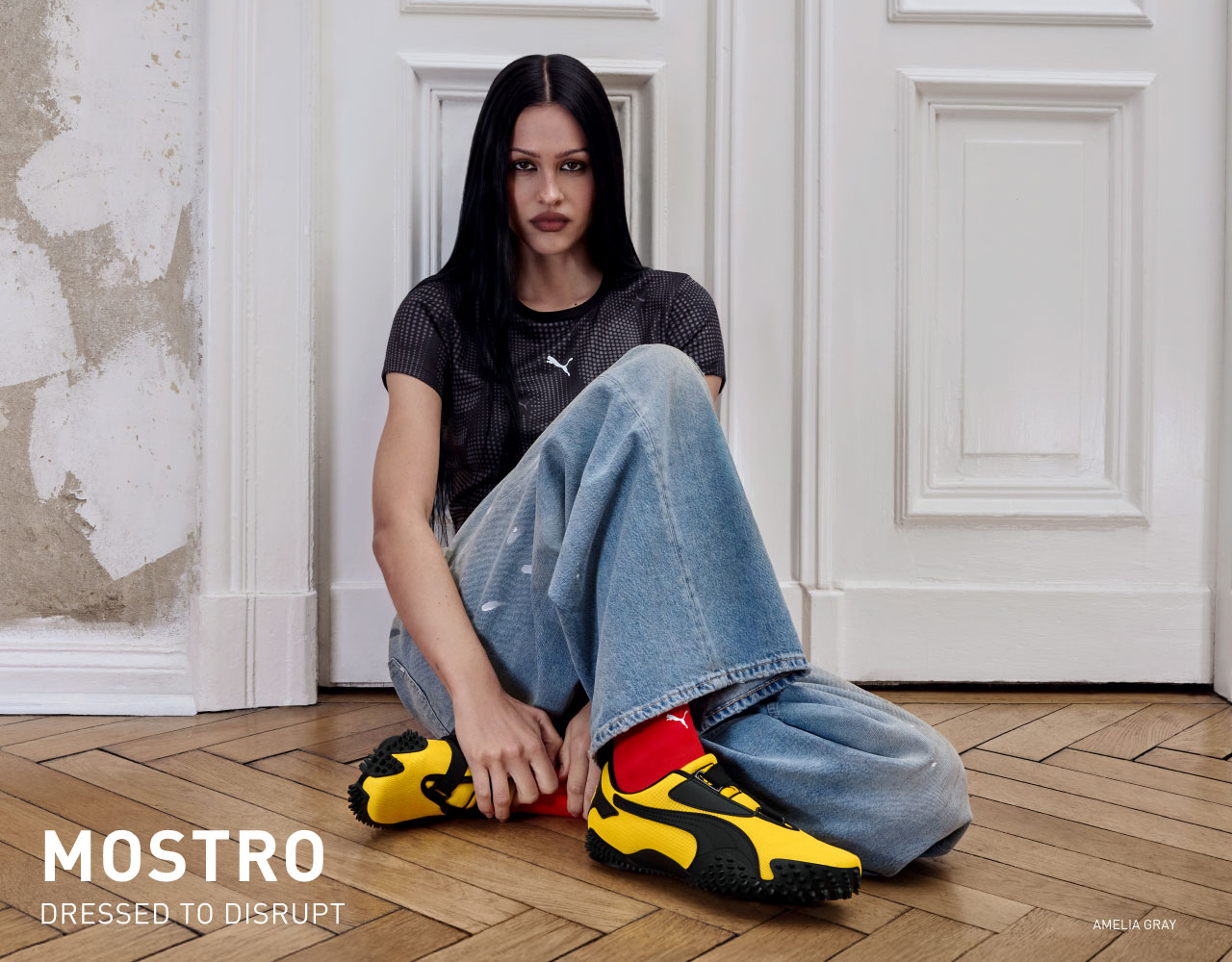 靈感取自義大利語「Mostro(怪物)」,展現大膽前衛的設計美學。此鞋款融合 60 年代短跑釘鞋的流線輪廓 與 80 年代衝浪鞋的休閒元素,打造出獨一無二的混合風格。具標誌性的 低調雕塑化鞋身設計 與 前衛釘狀鞋底,是潮流穿搭的焦點之選。