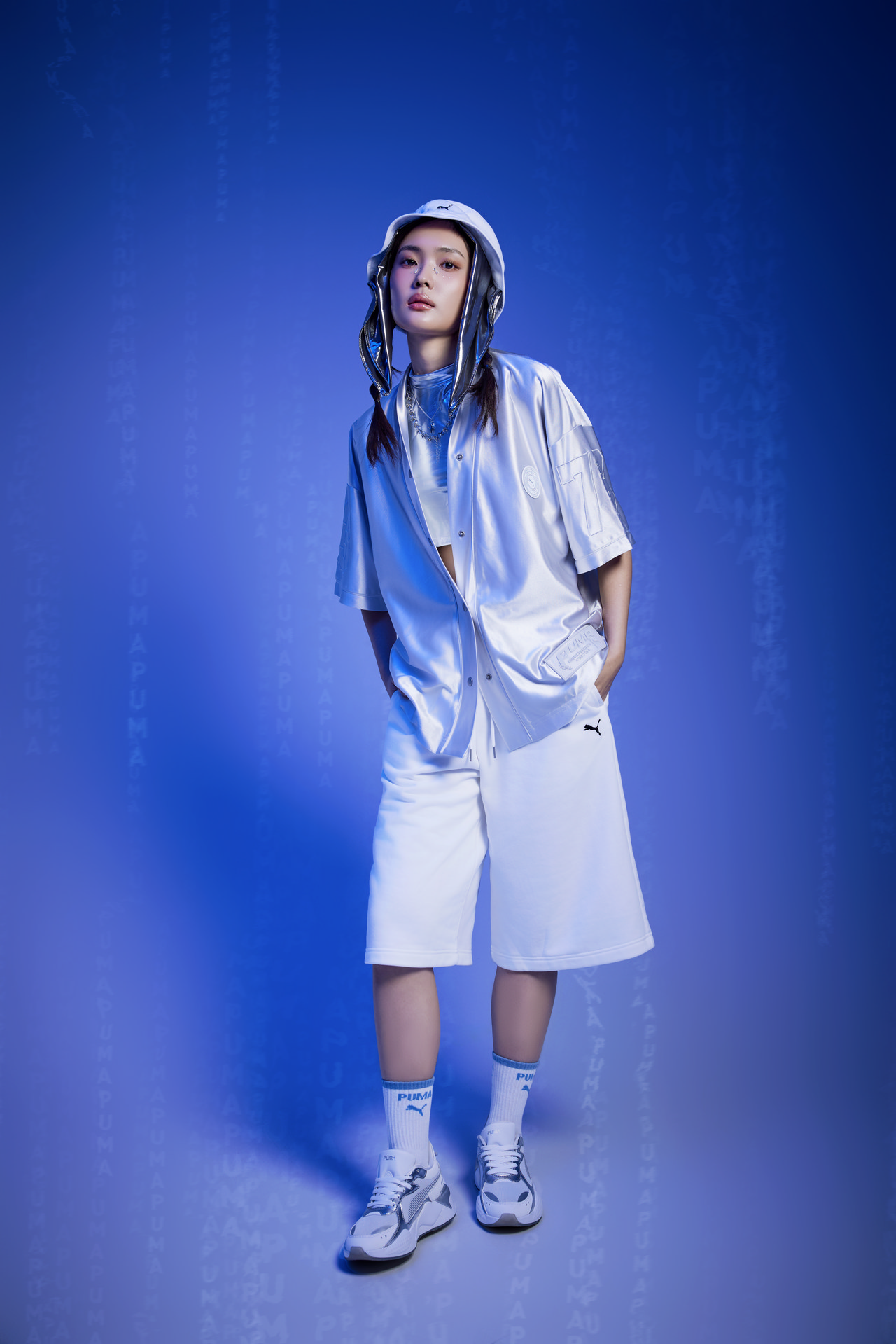 - PUMA 流行系列ESS 14吋短褲具有羅紋腰頭、金屬末端的色調抽繩和時尚的標誌刺繡