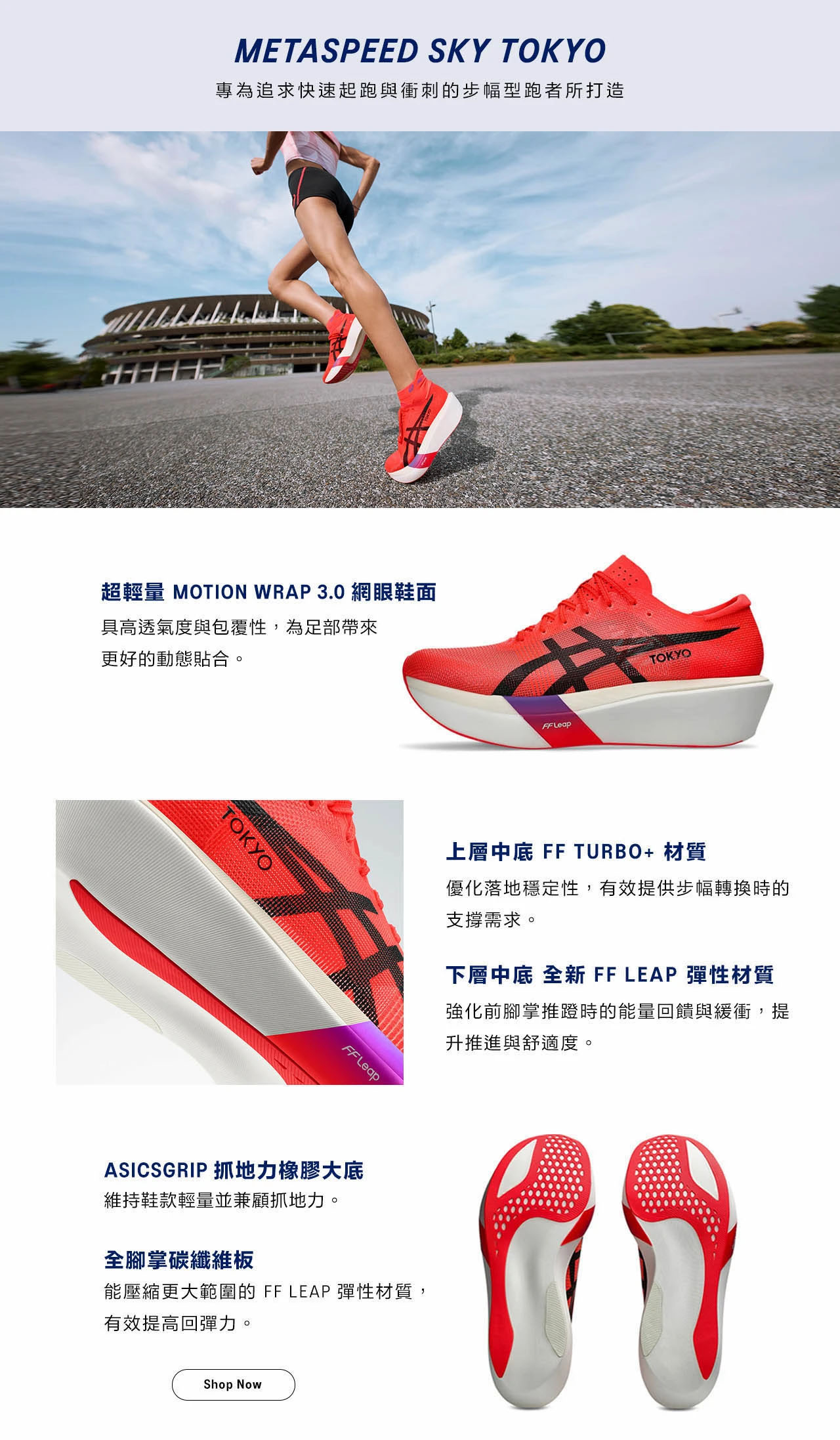 - ‧METASPEED SKY TOKYO 鞋款是專為追求快速起跑與衝刺的步幅型跑者所打造