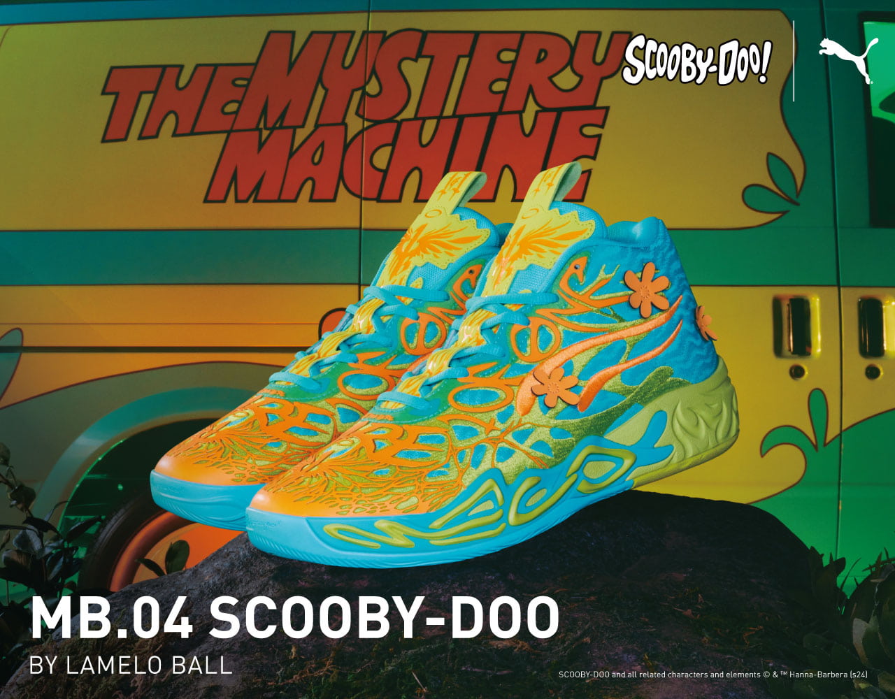 PUMA MB.04 Scooby Doo籃球鞋的分區 5D 印刷與網眼布鞋面可大幅提高透氣度與針對式支撐,而NITRO氮氣科技和高耐磨橡膠外底,提供靈敏的緩震效果和抓地力。