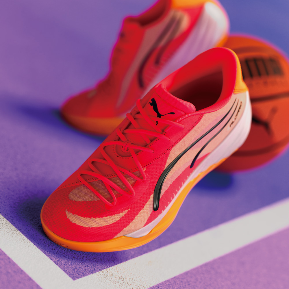 PUMA All-Pro NITRO™籃球鞋為全新頂級實戰鞋款,使用NITRO™ SQD 中底科技,針對腳掌在激烈運動時產生的側向壓力,提供更好的支撐度。後腳跟的TPU穩定系統、鞋底安裝一片抗扭穩定片及高耐磨橡膠大底,讓鞋身整體堅韌性更升級。鞋面則採用透氣的工程網眼布,針對側邊及前腳掌都有在內側做加強,兼顧性能與透氣效果。