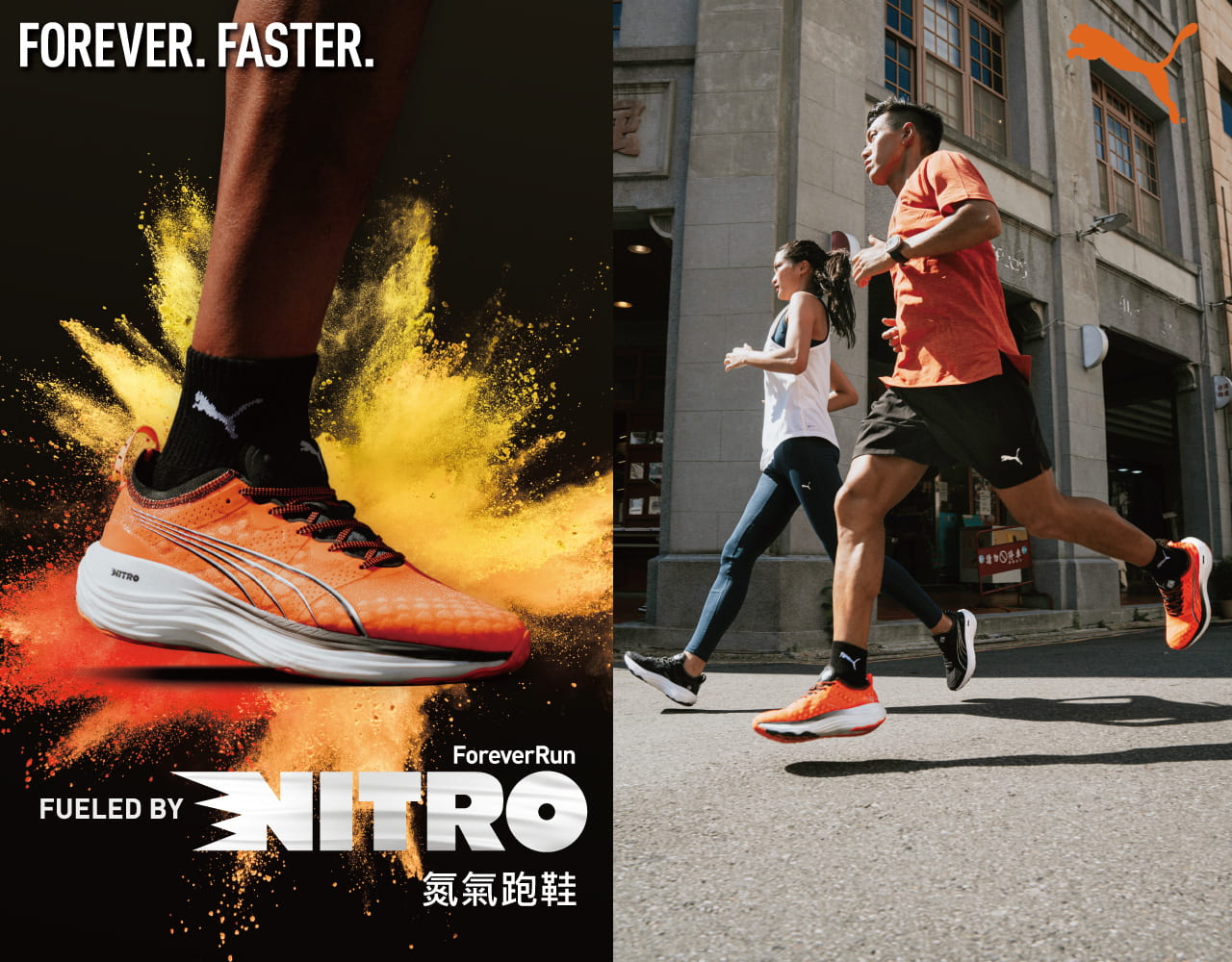 - 氮氣科技跑鞋 2023 全新生力軍穩定型 PUMA ForeverRUN NITRO 氮氣跑鞋雙密度氮氣中底 創新